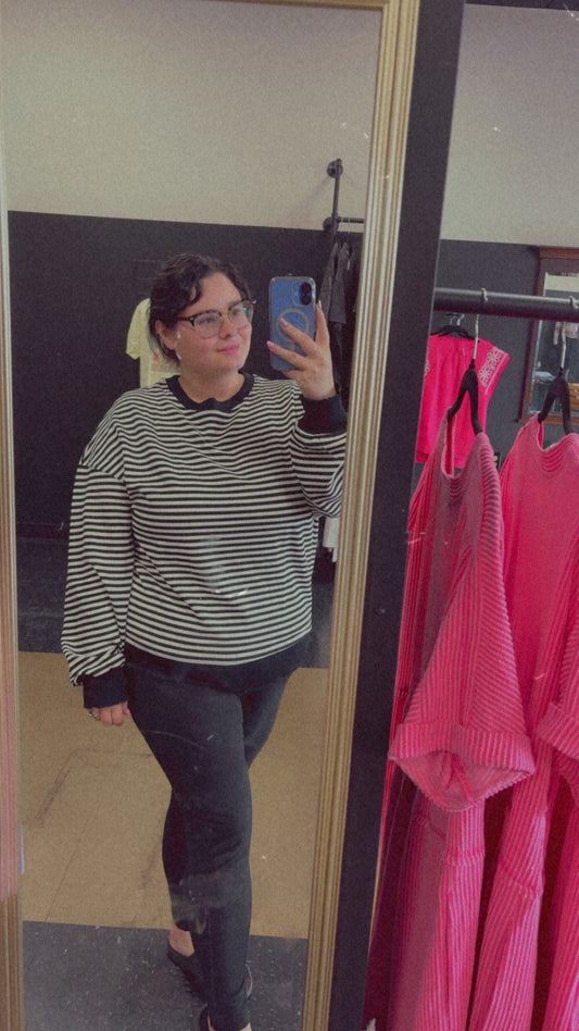 Breakin` Out - Black and white striped pulloverRegular price $24.99 USDRegular priceUnit price / per-
