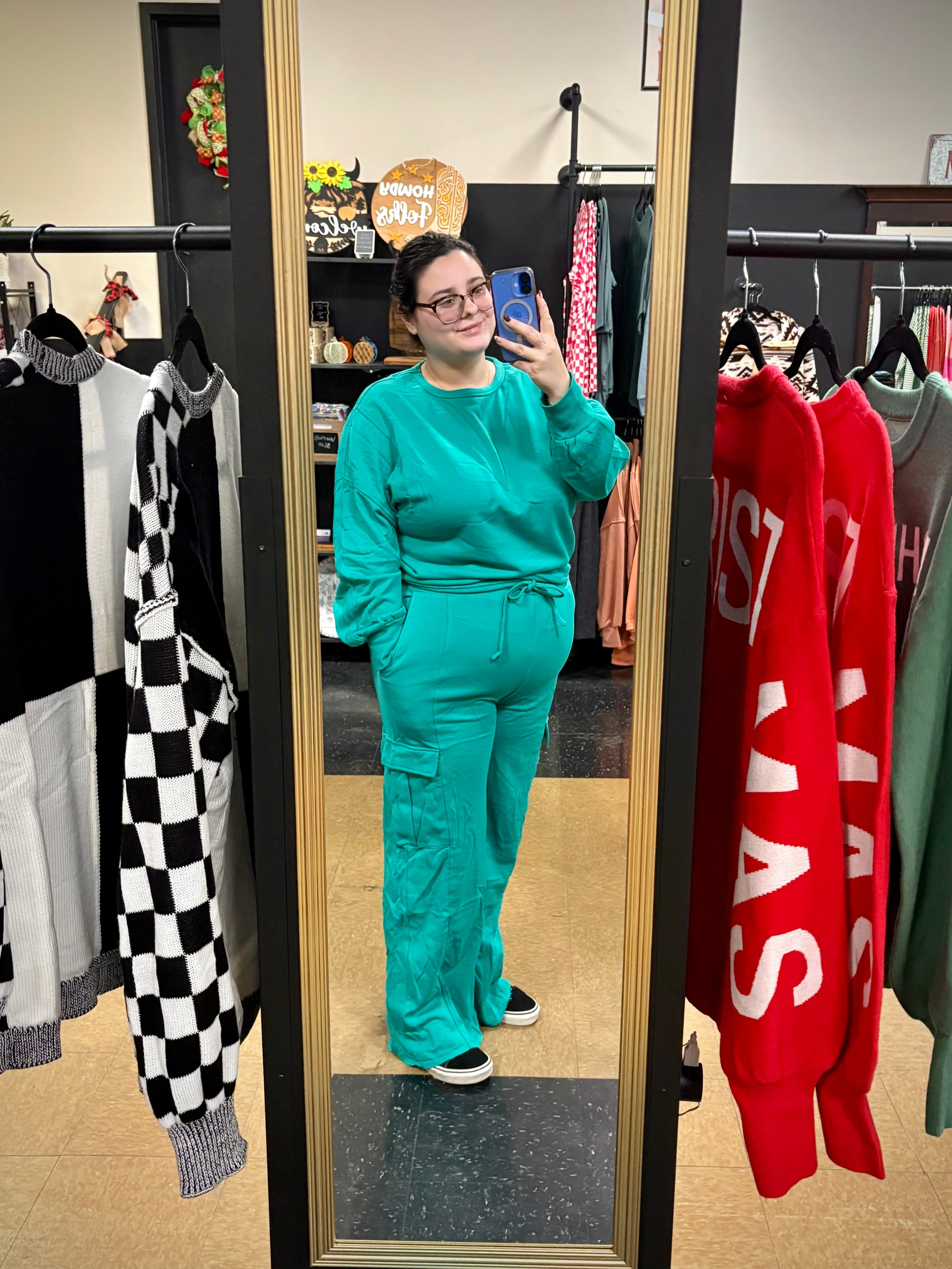 Get your comfy and cozy on all day with this perfect set! The Cargo Cutie Set includes cargo pants and a pullover top, making it the perfect choice for lounging or running errands. So go ahead and rock this look, because you deserve to feel cozy and look cute at the same time.